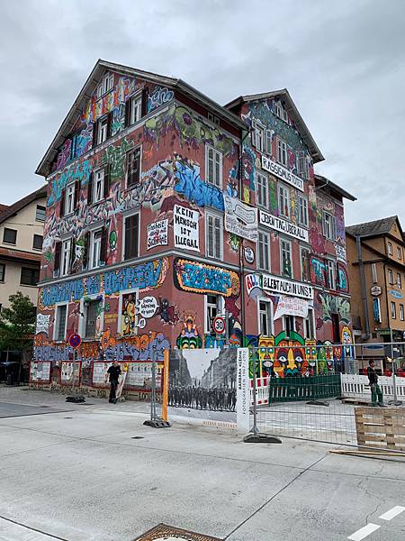 從火車站(Tübingen Hbf)出來往右轉一直走會看到一棟整面塗鴉的建築。看到它之後左轉。